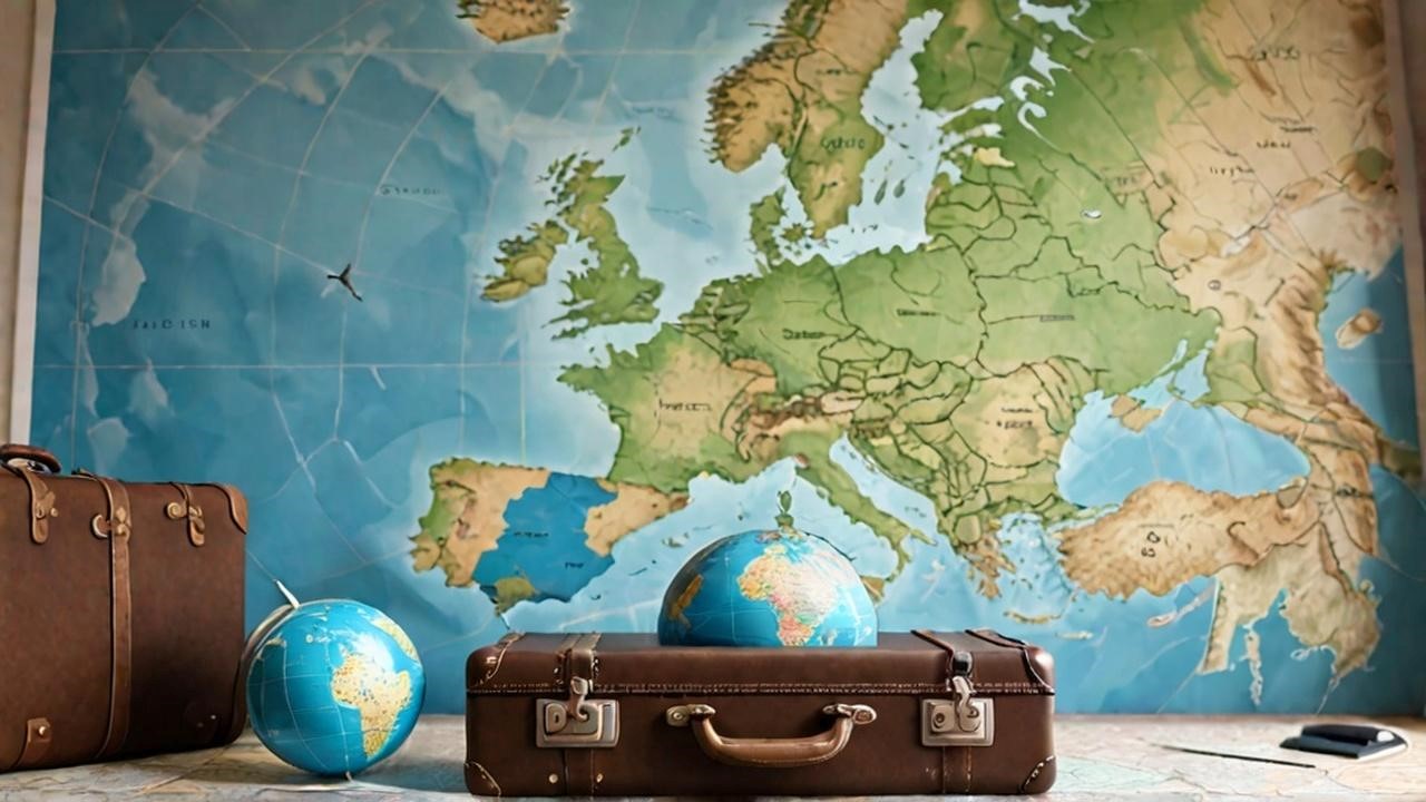 📸 Photo Idea 1: A traveler booking flights on a laptop with a map and coffee on the desk.